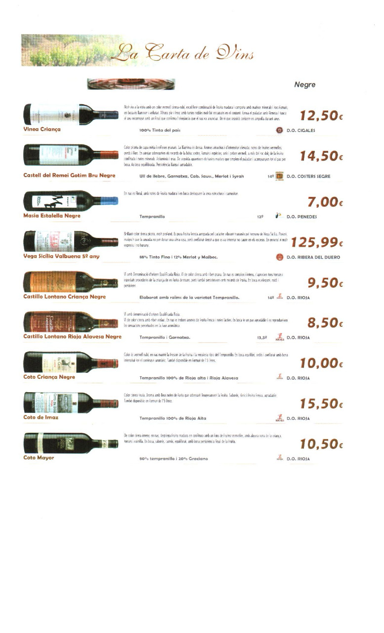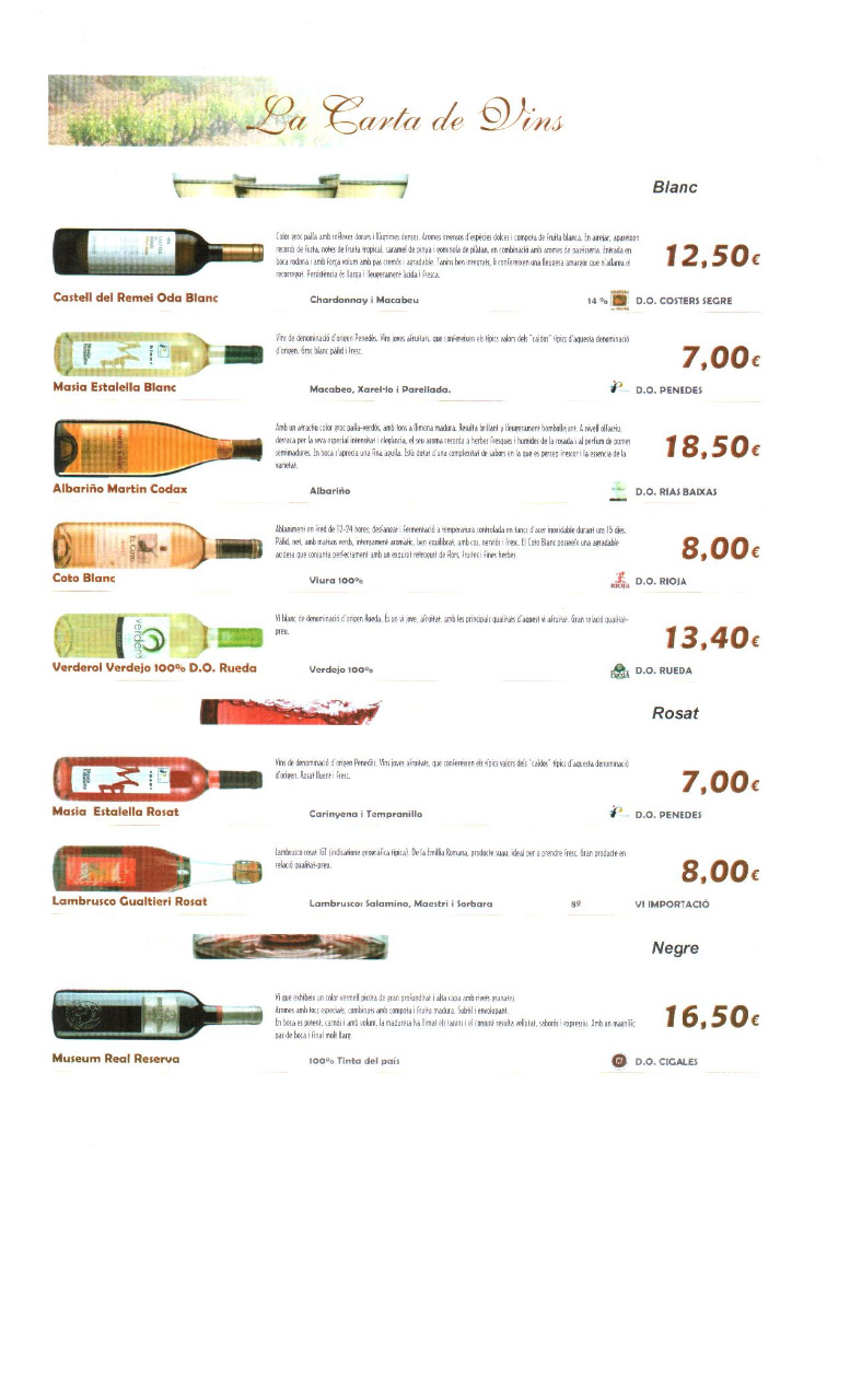 Carta de Vinos